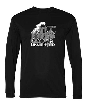 Unisex Long sleeve Performance T-shirt in Black or Silver with a 2 color front design